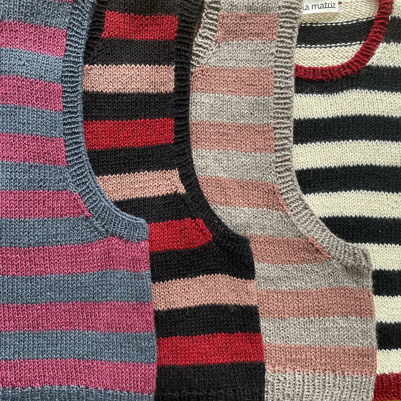 *Todos nuestros chalecos son tejidos a mano, por lo que pueden haber pequeñas variaciones en las medidas de las tallas.